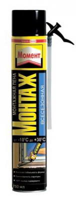 Предназначена для установки звуко- и теплоизоляционных материалов, окон и дверей, для герметизации отверстий, щелей, стыков, мест соединений кровельных конструкций и изоляционных материалов, проходов труб. Также монтажная пена Момент применяется для монтажа строительных деталей. Профессиональная пена быстро наносится, удобна и проста в применении, имеет хорошую заполняющую способность и низкое вторичное расширение. Однокомпонентная полиуретановая монтажная пена, затвердевающая под воздействием влажности воздуха. Содержимое одного баллона дает в зависимости от условий (температура и влажность воздуха, возможности свободного расширения и т.д.) до 25-45 литров готовой пены. Пена предназначена для использования как в летних, так и в зимних условиях (до -10 °C). - высокая стабильность, не разрушается с течением времени, - равномерность структуры, - 100% выход содержимого — до 45 л, - устойчива к перепадам температуры от –55°C до 90°C, - в затвердевшем состоянии безвредна для здоровья и озонового слоя атмосферы, - высокая адгезия к большинству строительных материалов, - отличные тепло- и звукоизоляционные свойства. Удобна и проста в применении, имеет хорошую заполняющую способность и низкое вторичное расширение.