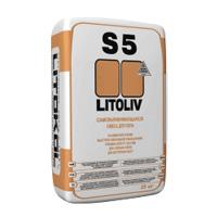 ХАРАКТЕРИСТИКИ: LITOLIV S5 - самовыравнивающаяся сухая смесь на основе цемента, инертных наполнителей отборной фракции и органических добавок. Продукт отличают следующие свойства: • отличные самовыравнивающие свойства, • быстрое схватывание и высыхание, • высокая механическая устойчивость на изгиб и сжатие, • высокая адгезия с традиционными цементными основаниями, • отсутствие усадки, • высокая устойчивость к истиранию.